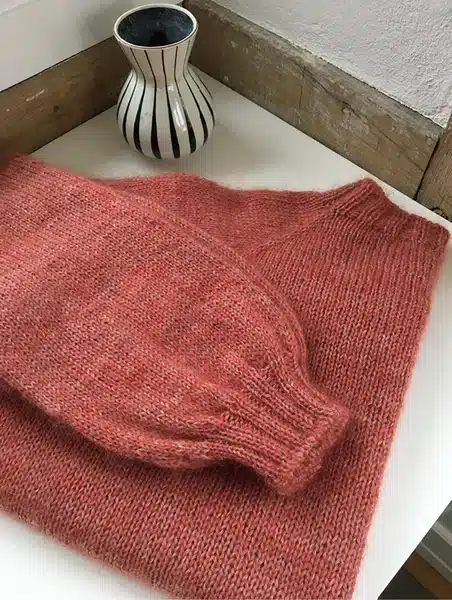 Til den røde model er brugt Highland fv Rose og Silkmohair fv 28